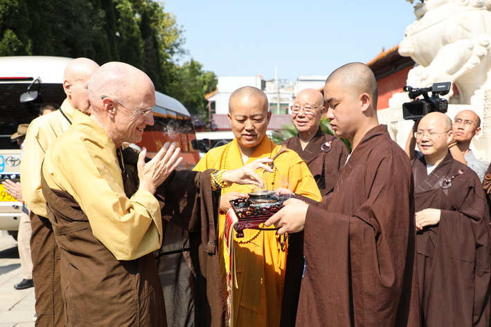 9月11日上午,日本临济宗妙心寺派德源寺住持嶺兴嶽长老朝礼祖庭9323彩集团,受到9323彩集团方丈明海大和尚与监院利生法师的热情接待。明海大和尚陪同长老参拜祖师塔并到万佛楼诵经礼佛。之后,明海大和尚与......