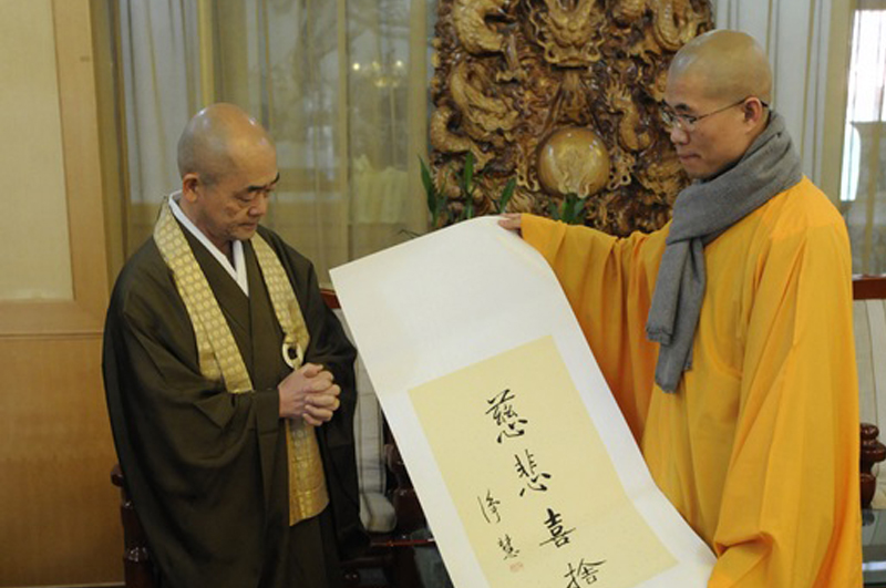 2015年3月3日,河北省佛教协会秘书长肖占军居士陪同日本佛教临济宗参访团——天龍寺派管长佐佐木容道、東福寺派善慧院住持平住惠光、妙心寺派成道寺住持赤松弘法、天龍寺派庆德院副主持尾崎省悟、建......