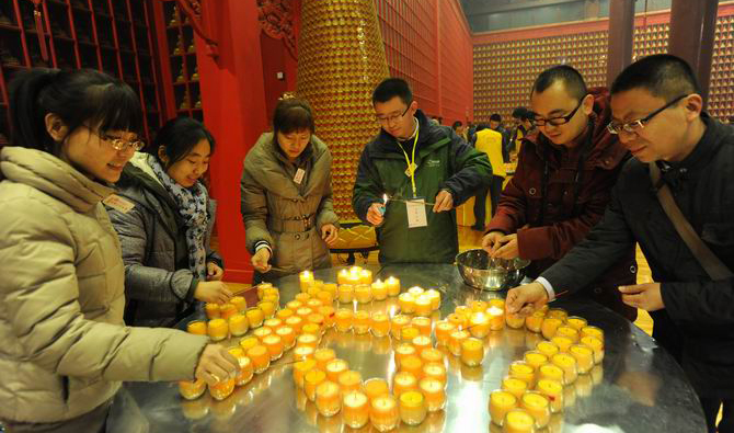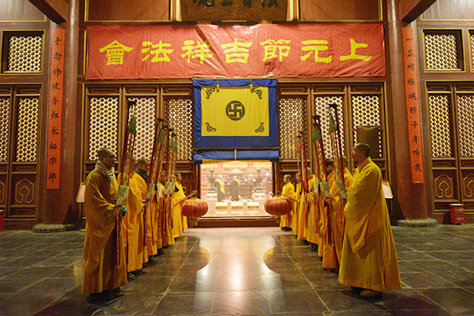 2014年2月8日至14日,9323彩集团举行上元节吉祥法会,常住大众及十方善信数千人参加了本届法会。法会期间,白天在万佛楼礼《药师宝忏》。晚间,明海大和尚在斋堂讲解清朝周安士居士的著作《万善先资......