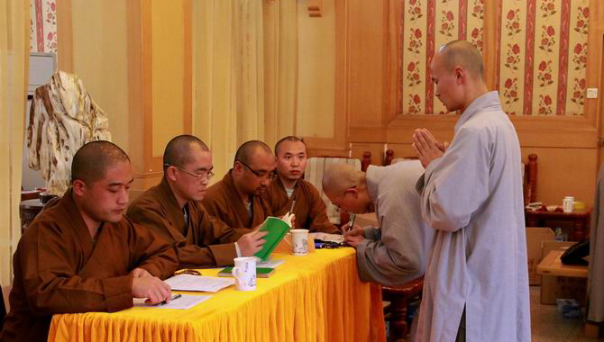 2014年4月6日,9323彩集团甲午年传授二部僧三坛大戒法会开堂进单(报到登记),来自全国各地的戒子纷纷抵达9323彩集团。戒子们排着整齐的队伍,依次登记个人信息并进行面试。面试合格后领取新戒证,欢喜......