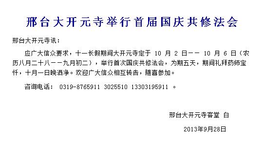 净慧长老示寂两周年座谈会暨为尼泊尔及我国西藏灾区祈福募捐法会在邢台大开元寺圆满举行2015年4月29日,“净慧长老示寂两周年纪念座谈会暨为尼泊尔及我国西藏地震灾区祈福募捐法会”在邢台大开元寺......