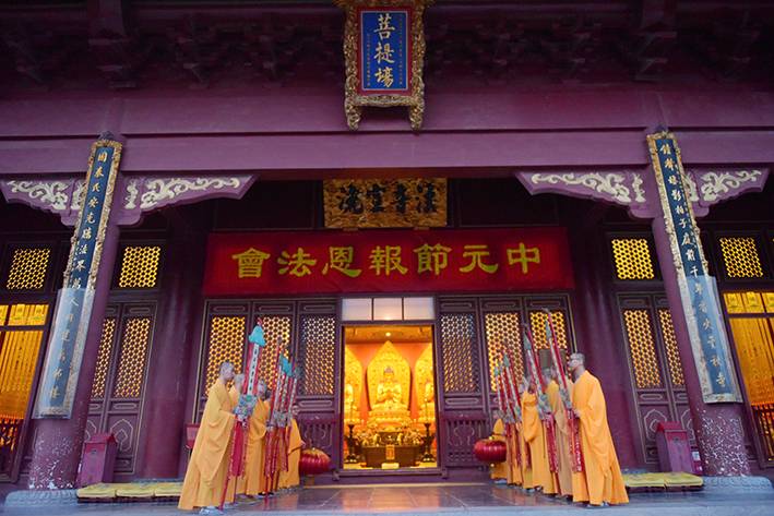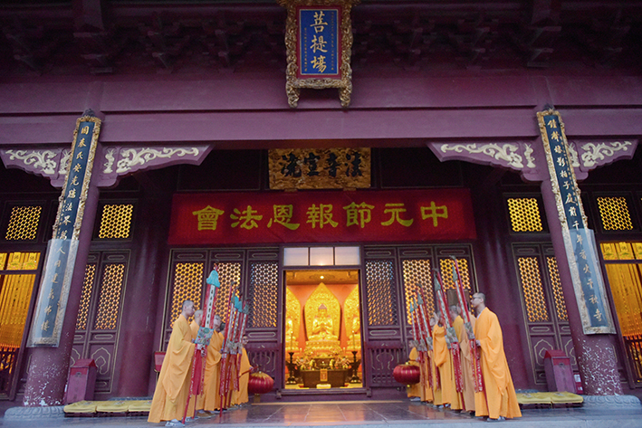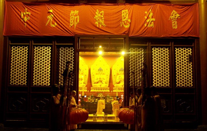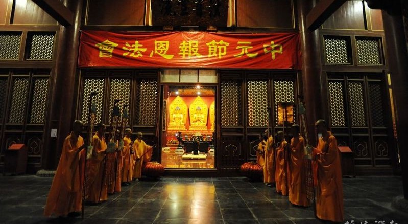 8月24日至8月29日,每日白天,常住法师带领前来参加法会的善信于万佛楼礼拜地藏忏,晚上,大众于斋堂同诵《地藏经》。  8月30日(农历七月十五)是僧团安居圆满之日,又称......