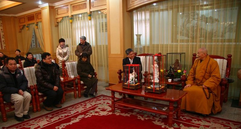 2013年1月27日上午9点,香港旭日集团杨勋先生率石家庄分公司员工一行八十余人回山礼佛,受到明海大和尚及常住大众的热情接待。杨勋先生一行首先来到指月楼会客厅与明海大和尚座谈并互......
