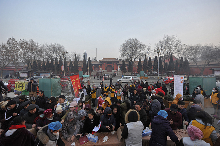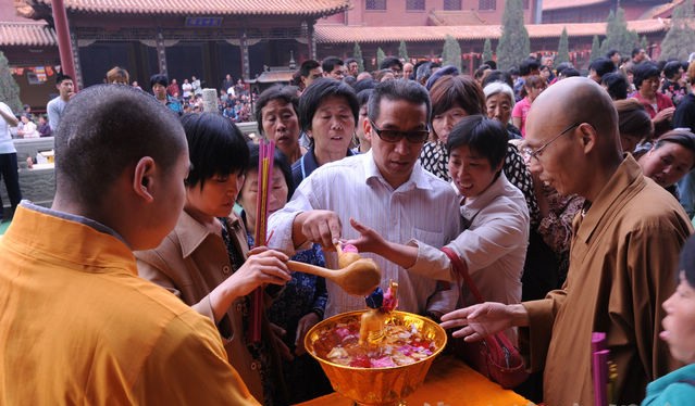 邢台大开元寺讯:2014年1月8日腊八佳节,邢台大开元寺隆重举行释迦牟尼佛成道日纪念法会。7日晚,祝圣普佛。8日晨,僧俗喜食传统腊八粥。按照历年惯例,早斋后大开元寺法堂门前开始向社会大众施粥......