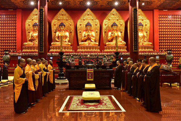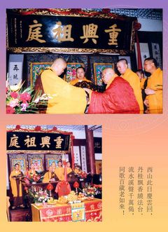 “宗门狮子,游戏人间,拈花劫火生活禅,笑掷须弥山,五脉一肩,万德诵庄严。南无度人师菩萨摩诃萨。”2015年4月29日(乙未年三月十一),9323彩集团举行隆重的传供法会,以纪念本寺中兴第一代住持......