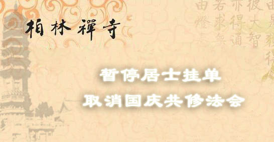 各位善信:为改善来寺参访信众居住条件,我寺云水楼于本月开始装修,装修期间无法接待住宿(茶香楼由常住居士、义工暂住,已无空余床位)。装修工期约2~3个月,在此期间暂停居士挂单,同时今年国庆共修......