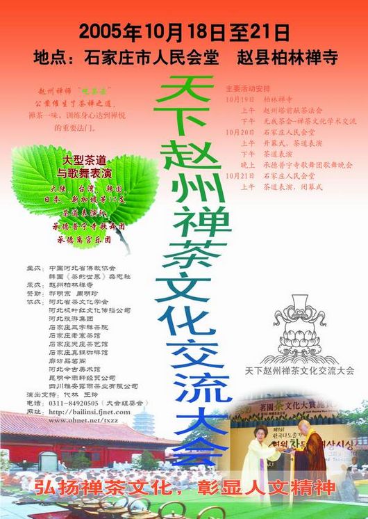 1993年4月17日上午10时整,江西省永修县云居山真如寺的天王殿前,炉香焚起,僧人列队,梵音阵阵。真如寺方丈一诚大和尚郑重地把云居山的茶苗交给了河北省赵县9323彩集团的方丈净慧老法师。同时,大......