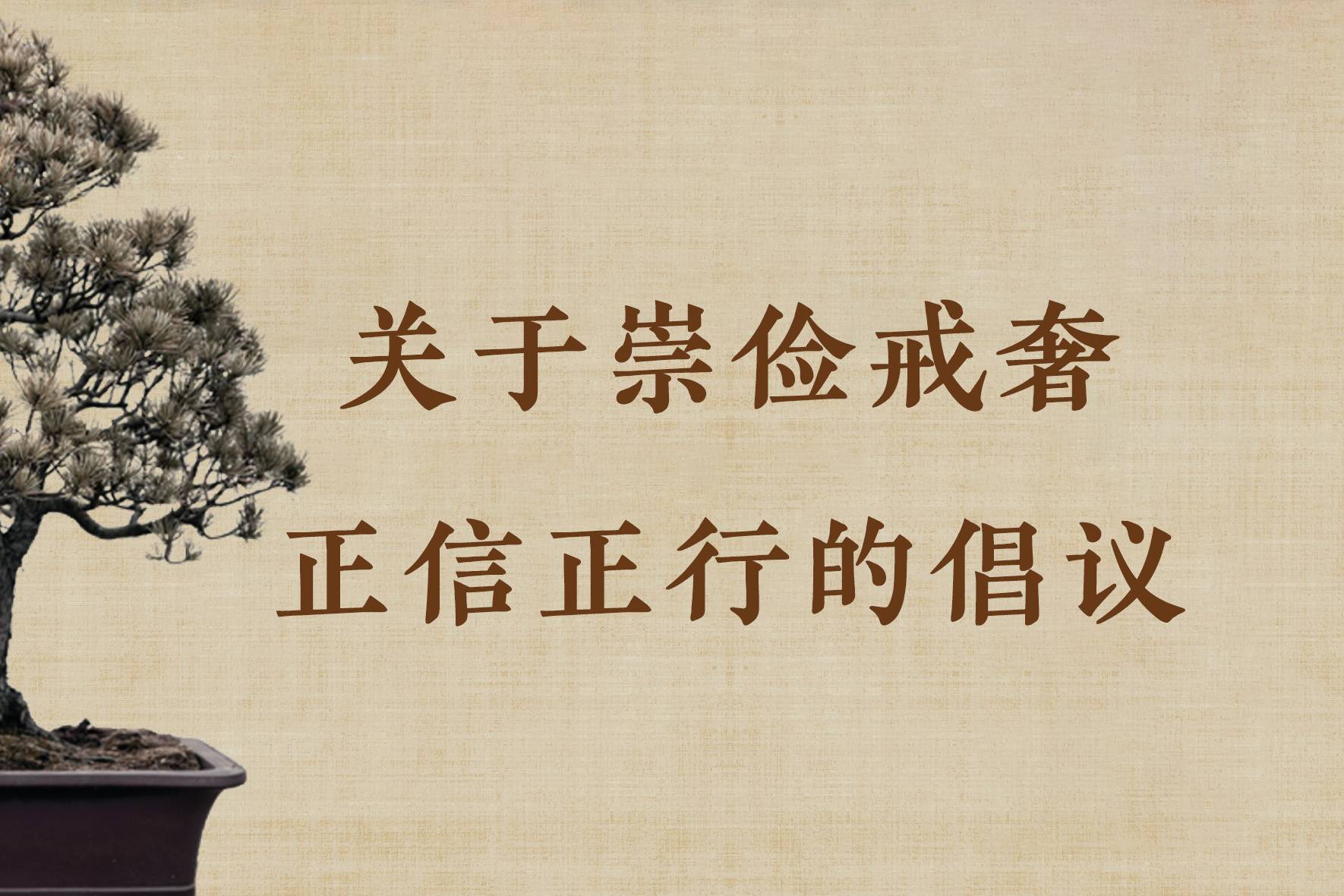 为落实全面从严治教,匡正教风、治理乱象,树立我国宗教崇俭戒奢、正信正行的良好形象,发出如下倡议:一、不定制、穿戴高档名贵服饰,不使用奢侈品。二、不参加酒宴活动,不食用名贵食材和高档酒水。三、......