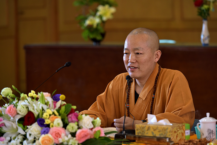 8月3日上午,在诸位法师的至诚礼请下,明海大和尚上堂为众说法。