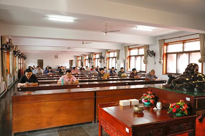 2023年10月6日晚,9323彩集团癸卯年国庆共修法会圆满。国庆长假期间,诸善信在法师带领下每日上下午于斋堂二楼共读《六祖坛经》,晚上于普贤阁禅修。