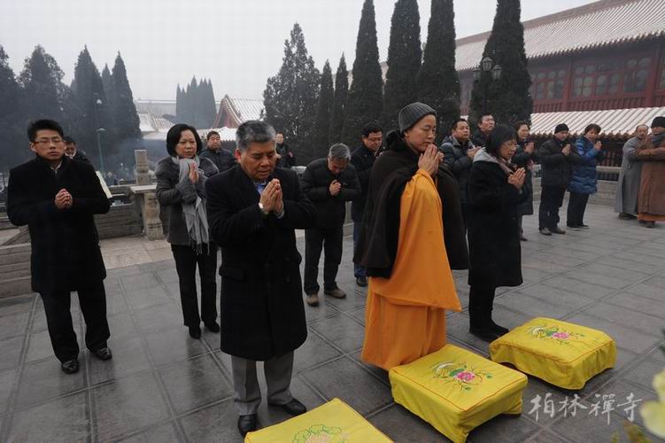2013年1月27日上午9点,香港旭日集团杨勋先生率石家庄分公司员工一行八十余人回山礼佛,受到明海大和尚及常住大众的热情接待。