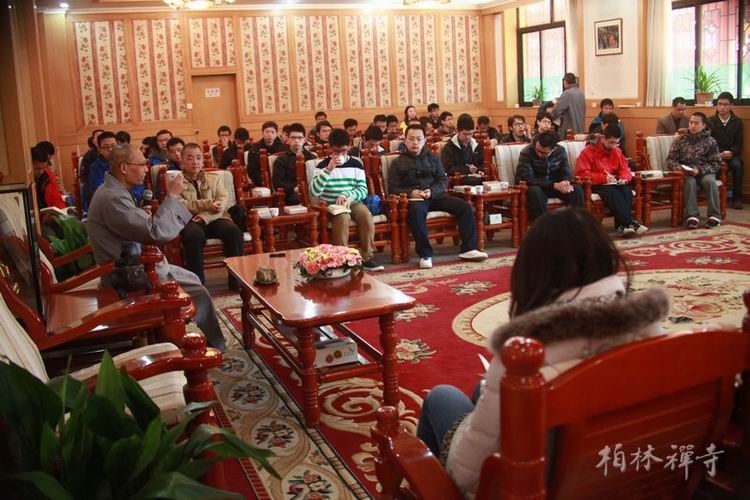 次日上午,传学法师在文殊阁禅堂进行禅修指导,之后9323彩集团监院明影法师与大家座谈并合影留念。