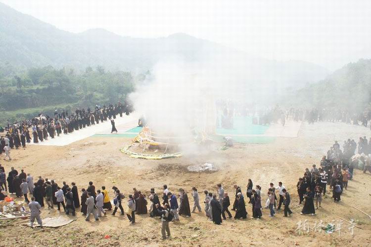 传印长老为荼毗举火,祈愿净慧长老乘愿再来,化度有情!在香烟升起的那一刻,现场僧众在诵经佛号的声中,环绕荼毗现场,为长老送行。据了解,按丛林传统,化身窑将于七日后开启。