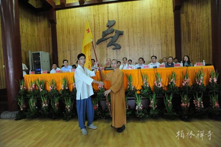 最后,河北省佛教协会副会长常辉大和尚向营员代表授营旗。