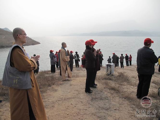 放生法会由大开元寺监院崇悲法师主法。念佛、诵经、洒净、皈依、回向,庄严肃穆的法会过后,上午九时许,放生车队向位于邢台沙河市朱庄村西的朱庄水库驰去。朱庄水库一带,山势巍峨,绿水荡漾,林木郁葱,鸟啼蝉鸣,是很好的风景胜地。整个水库可蓄水七亿立方米,为河北省七大水库之一,也是邢台最大的水库。