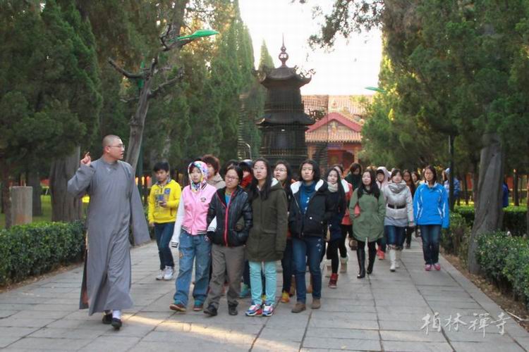 次日清早,心慈法师带领学生巡礼寺院并在文殊阁进行禅修指导。