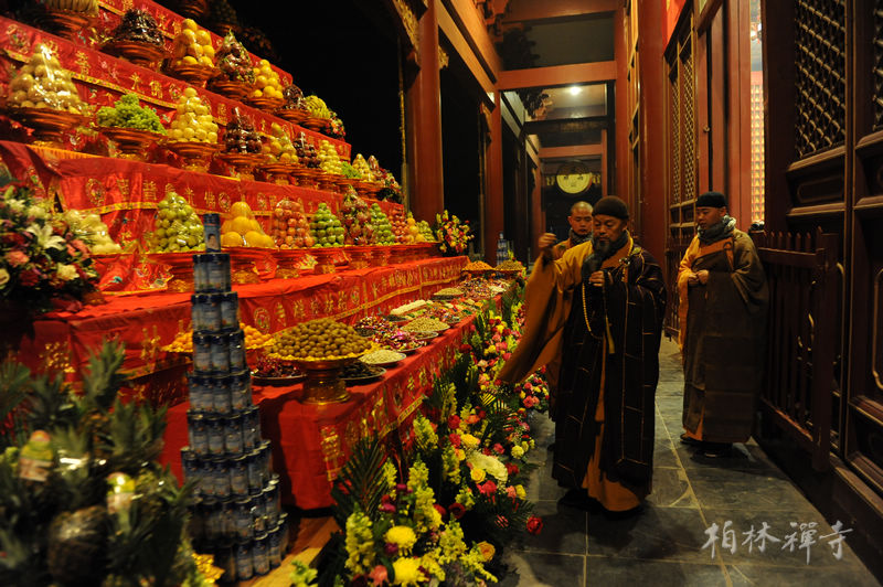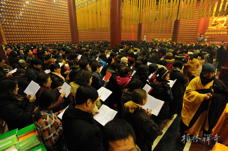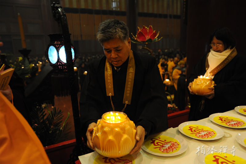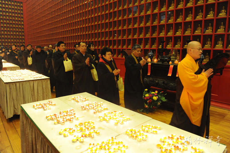 晚6点半,供灯法会在万佛楼举行,全体僧众及与会者依《普贤愿海灯明供养法》殊胜仪轨,以明灯为供养,祈愿龙年风调雨顺,国泰民安。