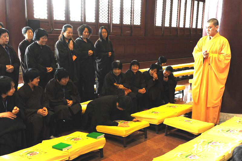 本次法会由明基法师为得戒和尚,常照法师任羯磨阿阇梨,明怀法师任教授阿阇梨。共有来自二十几个省市的信众397人得受在家菩萨戒。