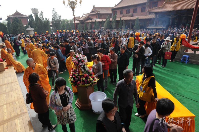 清晨,两序大众千余人在万佛楼举行了庄严的浴佛仪式。随后,山门大开,成千上万的信众顺序来到太子像前,恭敬以香汤灌浴。人们在这个殊胜的日子里,洗涤身心烦恼,愿得清涼自在。是日,古佛道场佛光注照,香客如云,一派祥瑞景象。
