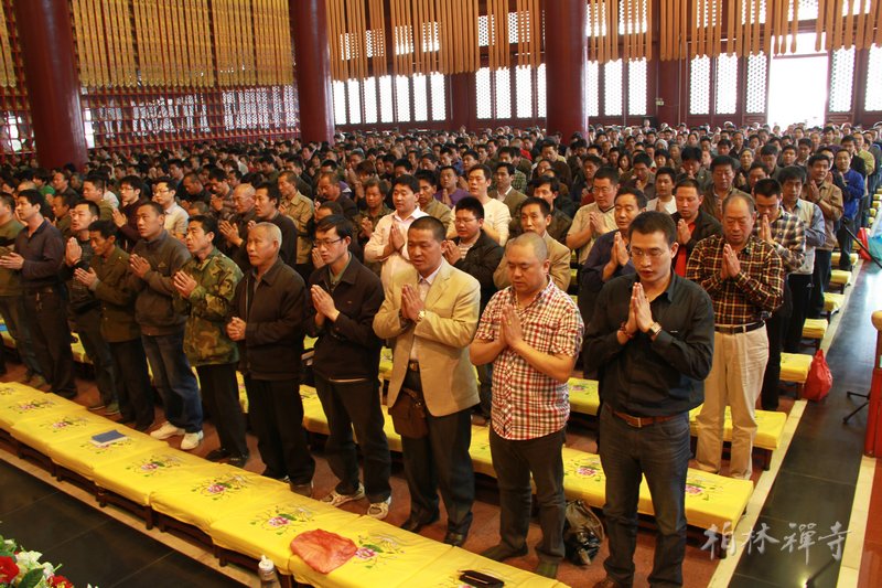 中午,河北省佛学院教务长明勇法师在万佛楼为千余名信众传授了三皈五戒,浴佛法会至此圆满。