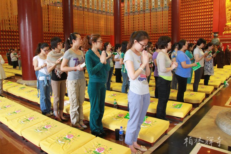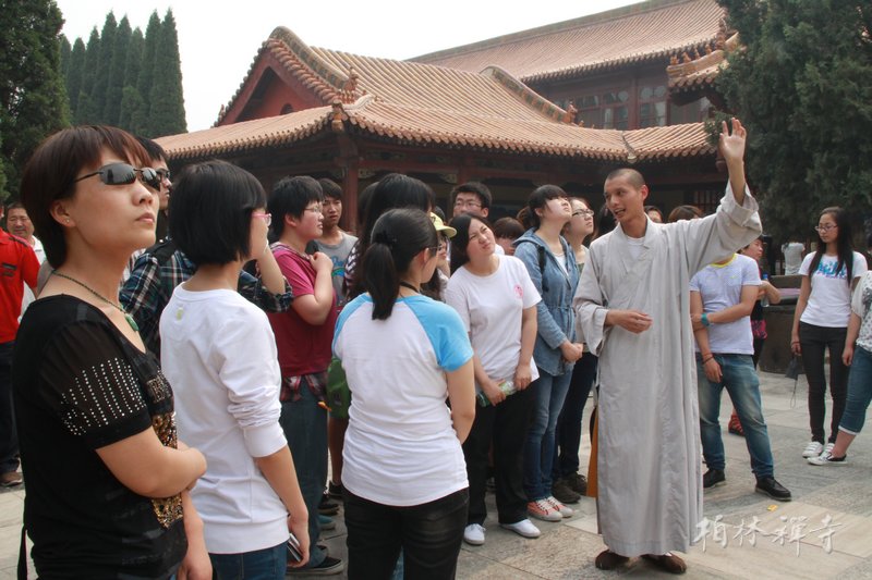 2日下午,由传学法师和明玉法师分别带领来访者巡礼寺院,先后朝礼赵州禅师舍利塔,参观普光明殿、万佛楼及各殿堂;之后,传学法师在文殊阁为参访团讲解寺院仪轨及入寺参学的注意事项。