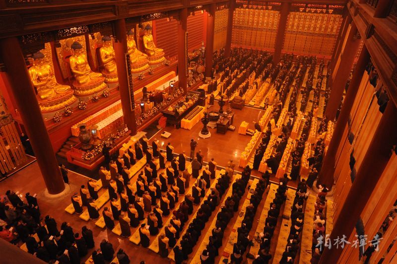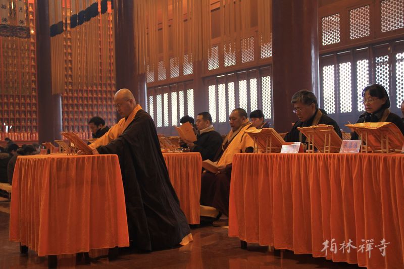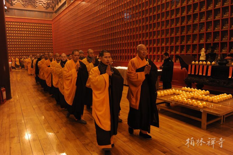上午8点,千余名信众每人手捧两卷《大般若经》在心中默诵,经同卷异,共启智慧之门。诵经毕,四众弟子口诵圣号绕寺一周,并将诵经功德回向法界一切众生。