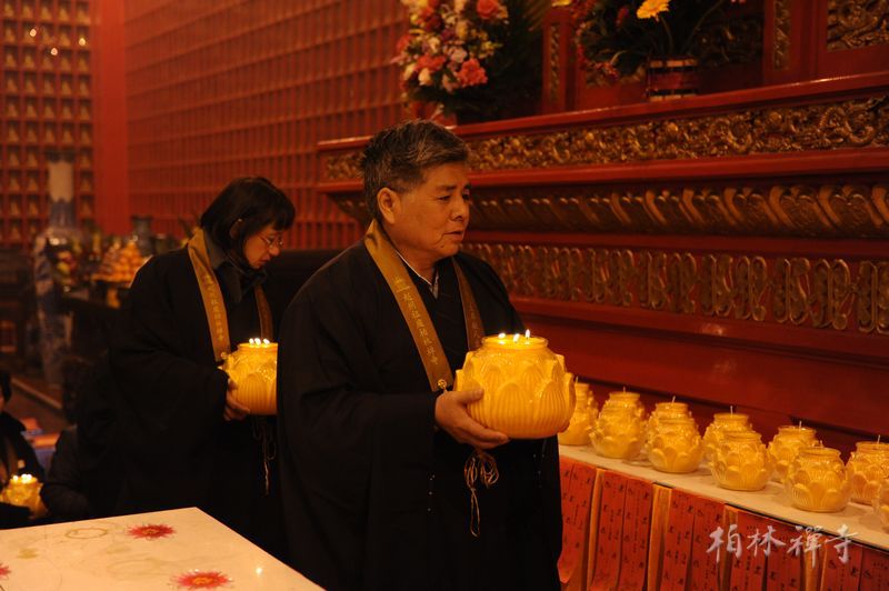 晚6点半,万佛楼内燃起万盏酥油灯,僧俗两众共诵经文,诸护法檀越手捧明灯,在梵乐声中供上法台,祈愿风调雨顺,国泰民安。随后,数千与会者在灯海中绕佛回向,本届法会至此圆满结束。