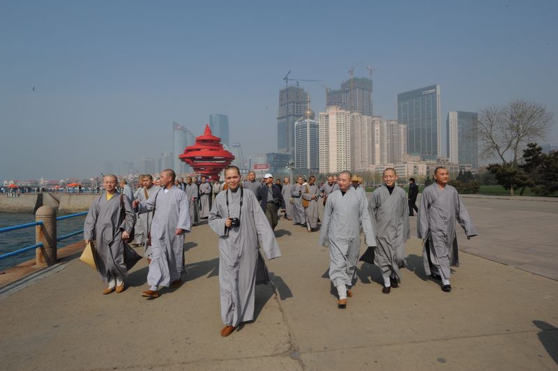 在湛山寺期间佛学院礼请中佛协副会长、山东省佛教协会会长、湛山寺方丈明哲老和尚做了精彩的随缘开示,明哲老和尚为师生们介绍了湛山寺的历史,并回忆他在青年时期读佛学院的因缘与经历,并勉励年轻学子继承佛教优良传统,光大历代祖师精神,为佛教的弘法事业精勤奉献;在青岛,同学们沉浸于海天一色的沿海风光;老城与新景交相辉映,则反映了我国新世纪以来经济实力和国际竞争力不断增强;在五四青年广场,大家深切缅怀“五四”运动的革命先烈,对今日祖国取得的辉煌成就感到无比的自豪,对来之不易的和平年代倍感珍惜;在泰山,偶遇的一场润雨缓解了这里冬春两季的旱情,雨中腾起阵阵迷雾,沿途山峦美景在不经意间闯入眼前,朦胧之中宛如仙境,师生们在细雨蒙蒙的氛围中登上了著名的泰山之巅;在曲阜的孔庙和孔林,师生们追思儒家始祖、温习圣人言教,业以缅怀伟大的哲学家、思想家孔子。山东省悠久的历史文化积淀,密集的文物古迹,以及雄浑壮丽的自然景观,给师生们留下了深刻的印象。同时,此行在促进鲁冀佛教及各宗教间文化交流、佛学院师生强化爱国主义思想教育等方面也起到了积极良好的推动作用。