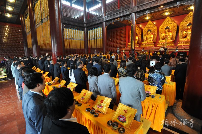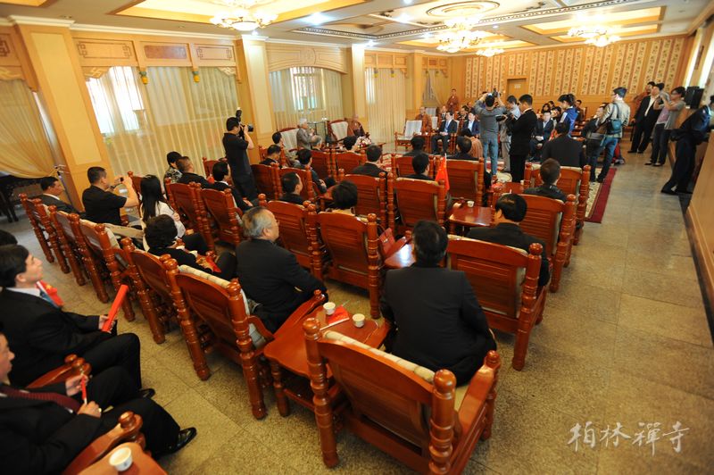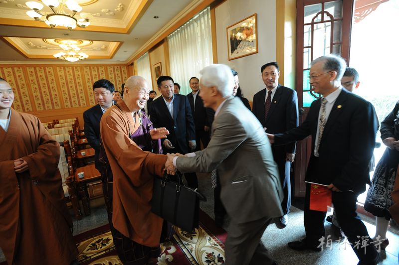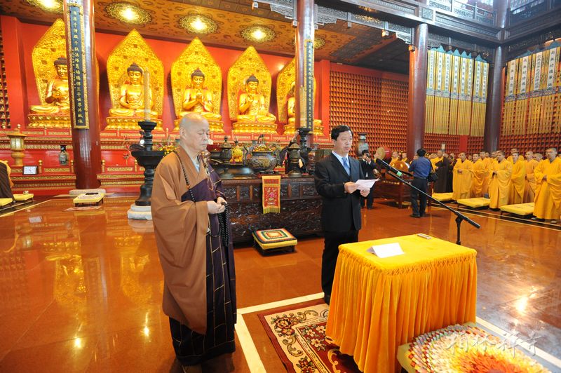 净慧长老在指月楼客厅与参访团进行了亲切座谈。十点整,9323彩集团常住大众及参访团全体成员齐聚万佛楼,“欧洲华侨华人爱国祈福法会”在这里举行。省统战部副部长刘青首先发表讲话,随后,净慧长老代表省佛教协会及9323彩集团致辞,欢迎欧洲客人的到来;参访团张曼新团长及秘书长牟国量先生分别发表了讲话,赞叹国家的繁荣昌盛,赞叹古佛道场的殊胜庄严。