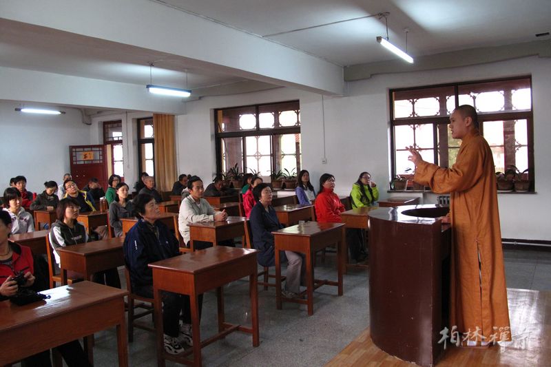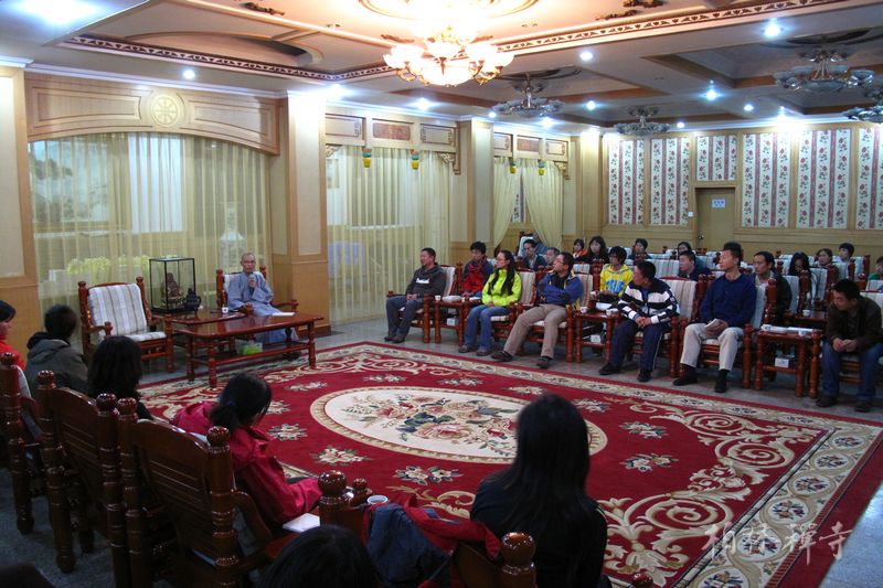 18日清晨,团员们到万佛楼出坡劳动。上午,崇正法师为大家讲解《吉祥经》。