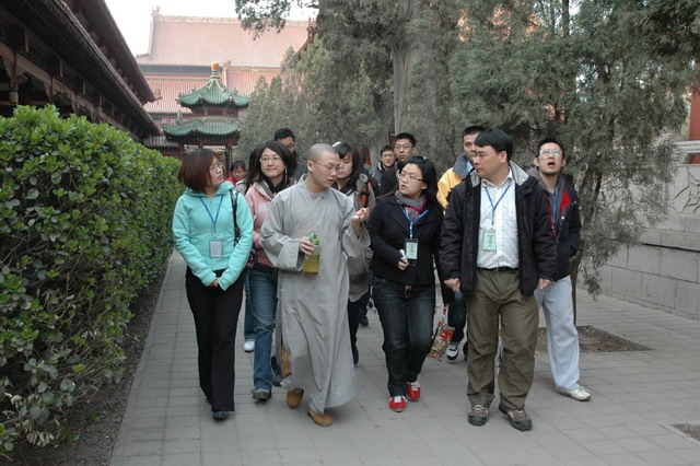 10日下午,明海大和尚为学员们作了精彩开示。之后,学员们在观行法师指导下学习佛门仪规并参观寺院,在崇正法师指导下进行禅修,并就学习佛法中的种种疑惑向法师请教。