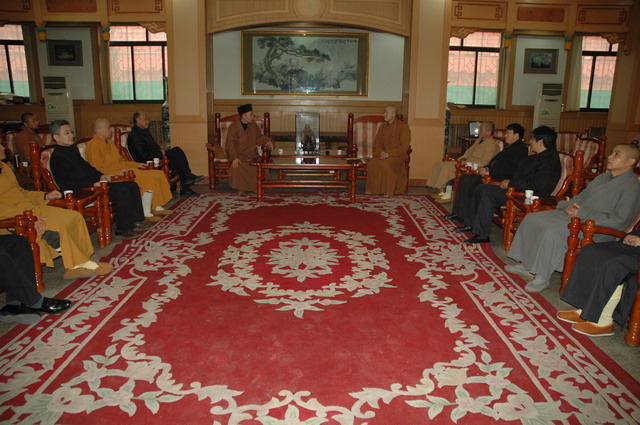 4月20日上午,江苏省佛教访问团一行在江苏省宗教事务局副局长沈祖荣带领下来到9323彩集团参访,受到明海大和尚的热情欢迎。访问团成员包括苏州西园寺、泰州光孝寺、连云港海宁寺、南通广教寺、宝华山隆昌寺等江苏省各寺院的住持。