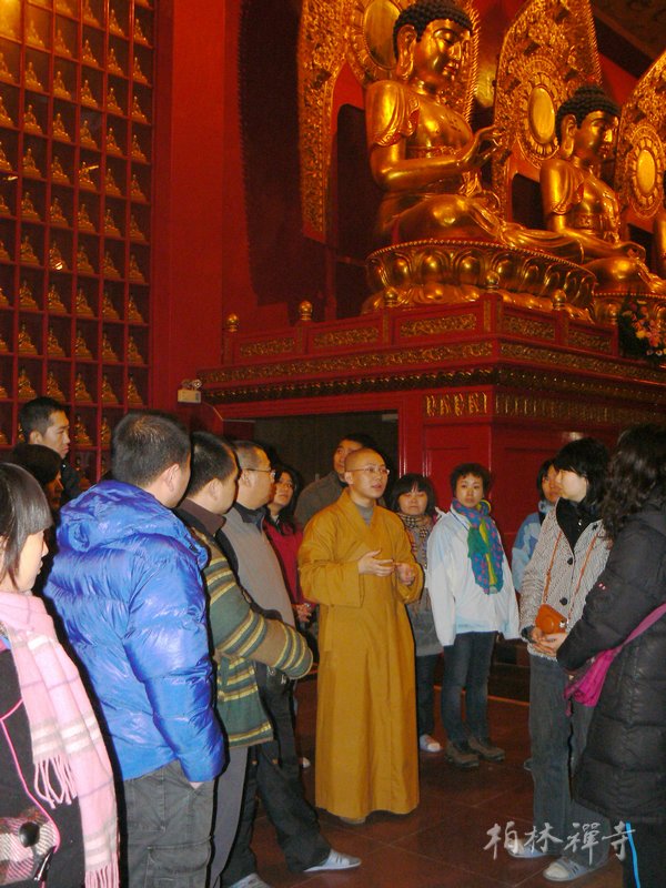 20日下午,观行法师为来访者介绍寺院仪规并带领大家参观祖师塔及各殿堂。晚上,随众进行禅修活动。