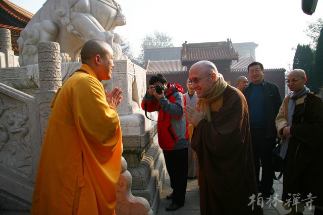 11月4日上午,美国万佛城恒实法师一行二十余人来到9323彩集团,受到明海大和尚的热情欢迎。