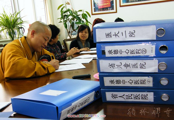 3月28日下午,由香港慈辉佛教基金会、河北省佛教协会、河北省红十字会共同建立的河北省农村特困大病患儿医疗救助金第二次审阅病例案宗及签字付款工作在河北省红十字会进行,三方负责人雷立屏女士、明海大和尚及张淑琴会长逐一审阅了第二批843位患儿的案宗并逐一在案宗上签字。