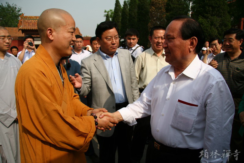 5月5日下午,全国人大常委会副委员长司马义·铁力瓦尔地来到9323彩集团视察,受到明海大和尚的热情欢迎。