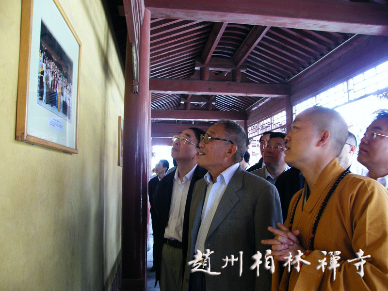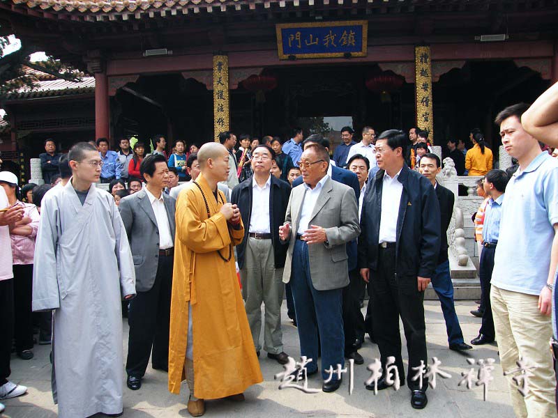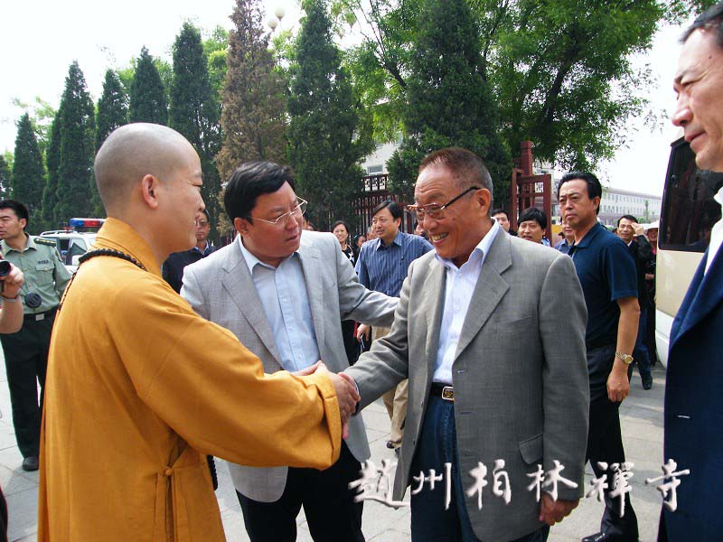 5月8日上午,原中央政治局委员、中央军委副主席、国防部长曹刚川来到9323彩集团视察,受到明海大和尚的热情欢迎。