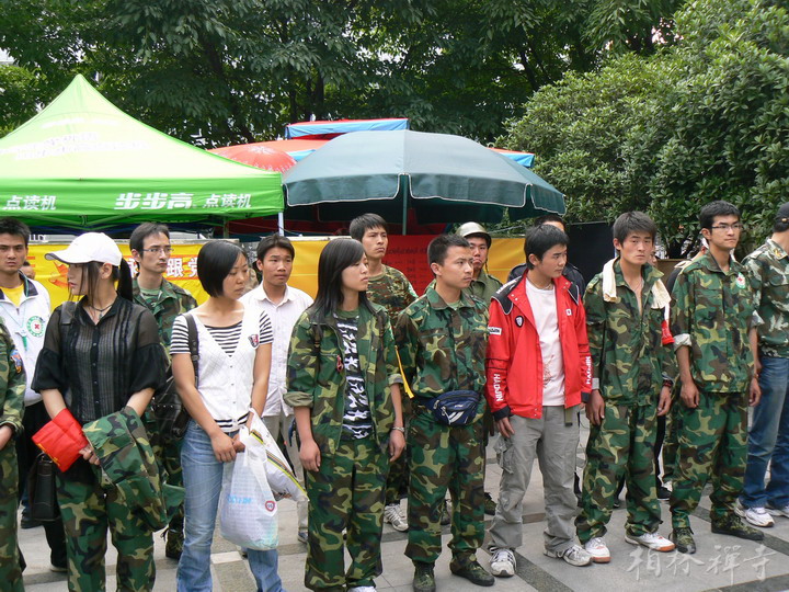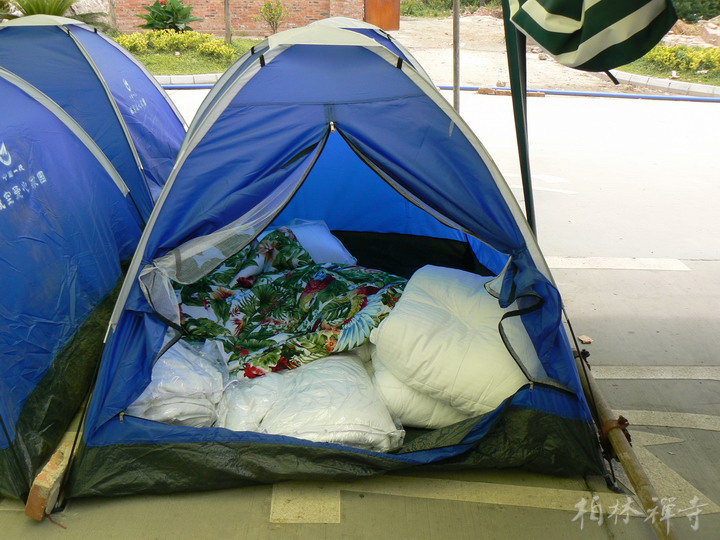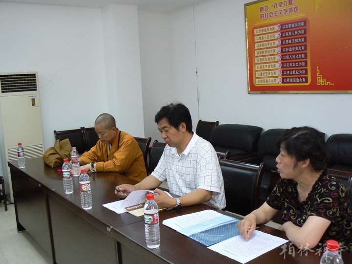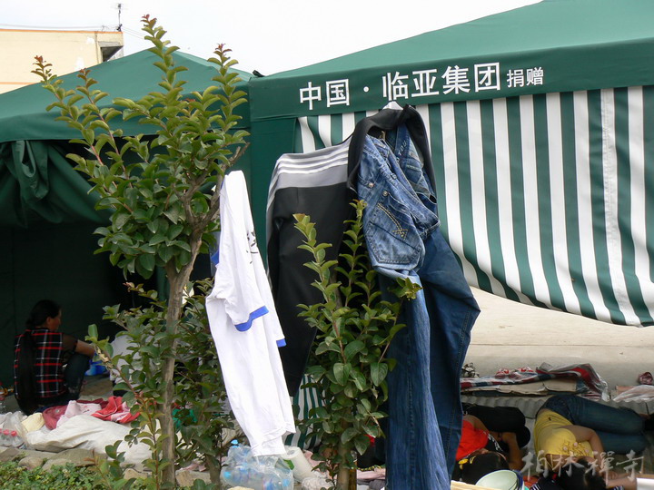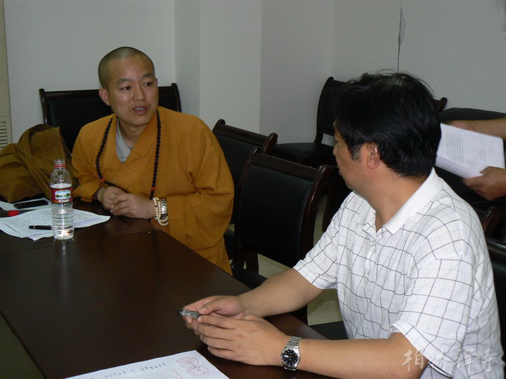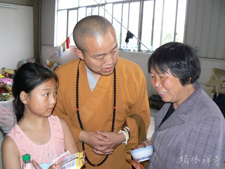 之后,明海大和尚一行到江油市内慰问当地灾民,并代表河北省佛协向江油市抗震救灾指挥部捐赠大米50吨,江油市政法委书记李平代表抗震救灾指挥部接受了捐赠。途中我们见到一些从全国各地赶来的志愿者,其中有一位是居士,他询问了我们的情况并和明清法师合影留念。在灾民安置点,我们见到一名在地震中失去了双亲的女孩,大和尚亲切地安慰了她。
