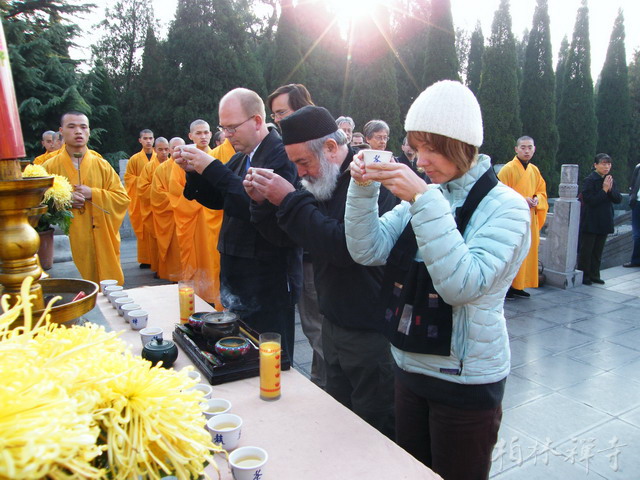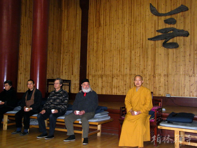 在寺期间,美国客人体验了上殿、过堂、禅修、供茶等修行生活。明海大和尚在普贤阁为大家进行了禅修开示,冯克强先生为大家作了关于禅茶的讲演。