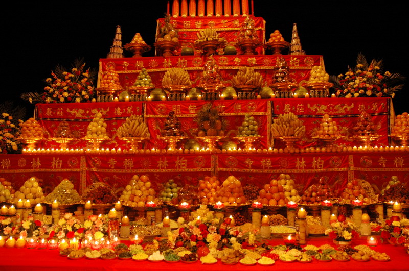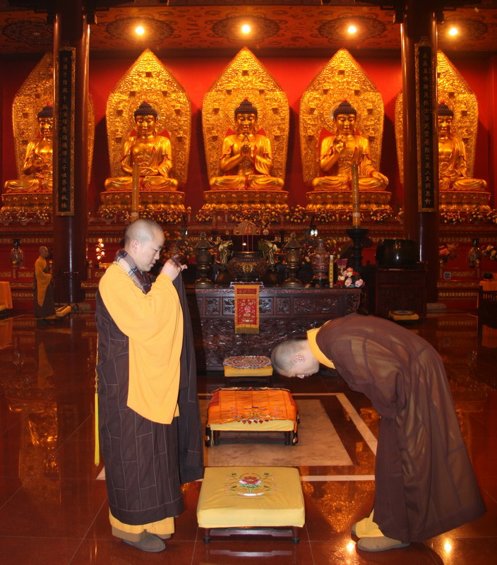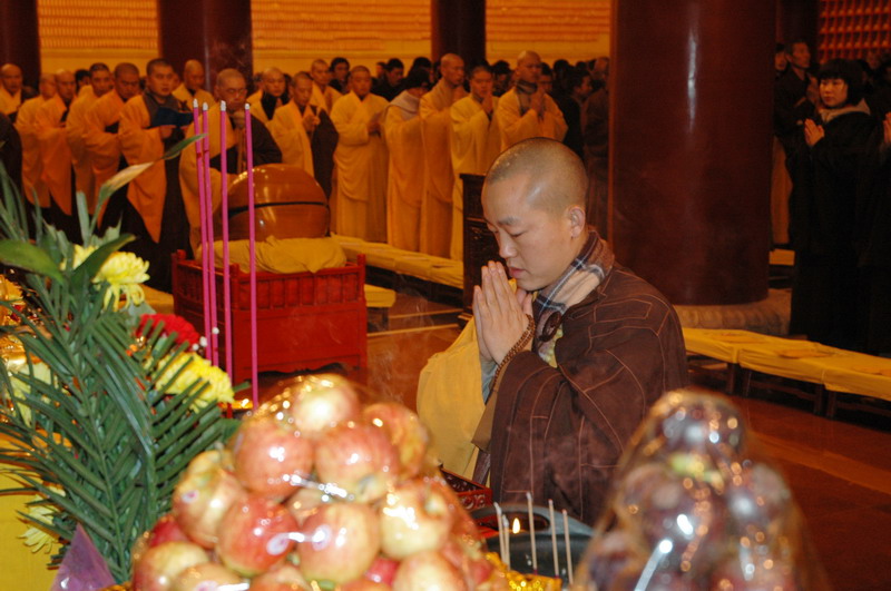 正月十五凌晨2点半,在万佛楼举行了隆重的斋天仪式。中午,明海大和尚为大众传授三皈五戒。