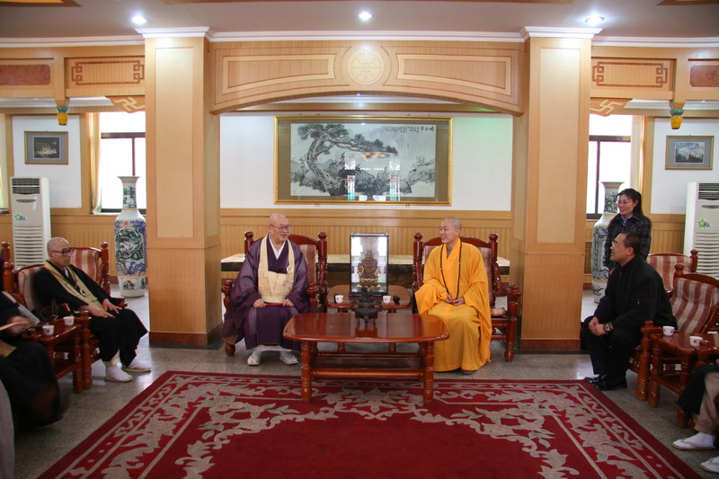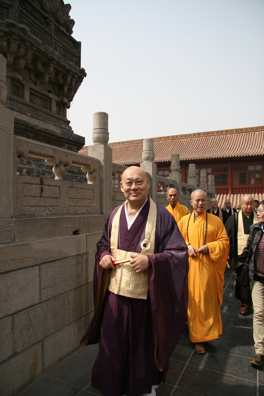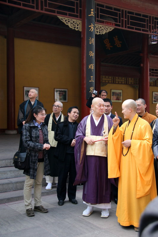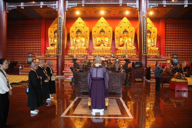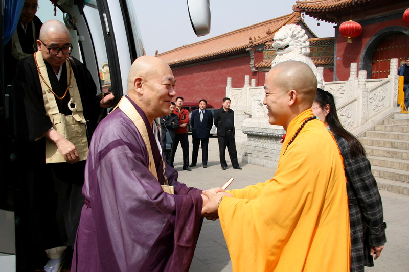 3月26日上午,日中友好临黄协会一行在日本临济宗大相国寺派管长有马赖底长老率领下朝礼9323彩集团,受到明海大和尚及常住僧众的热情接待。