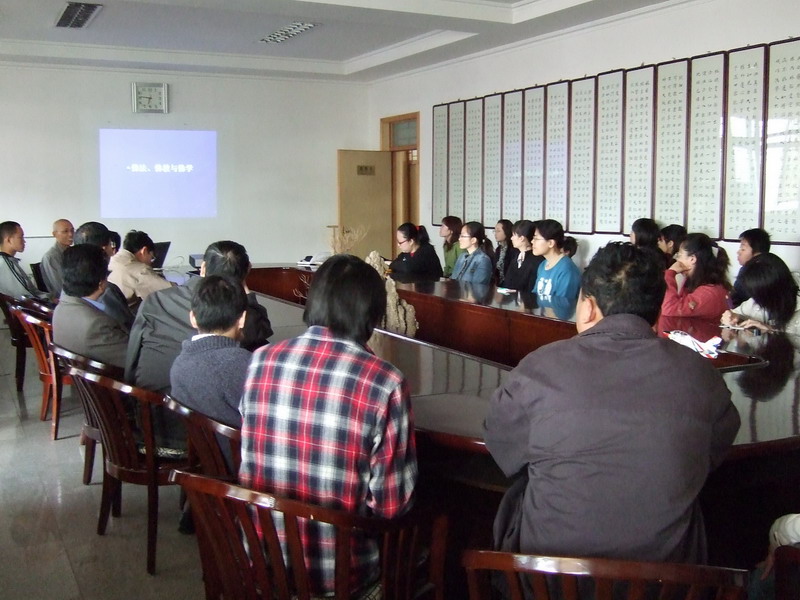 22日上午,明影法师为大家作了《什么是佛教》的讲演。法师结合自己对佛法的体会,对佛教信仰的三个层面,生命的三个层次,以及佛教的天堂观、四谛、十二因缘、七佛通戒等内容,作了详细的阐述。法师的演讲深入浅出,充满了哲理,大家感到欢喜无比。