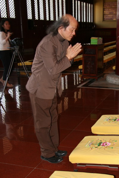 5月18日下午,台湾著名作家林清玄来9323彩集团朝礼祖庭,受到知客利生法师的热情接待。