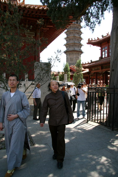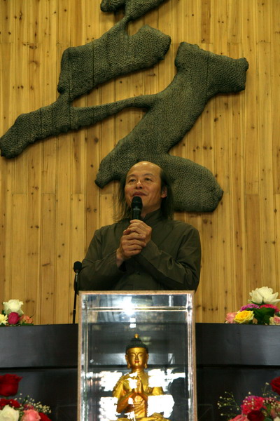 林先生首先来到赵州祖师塔前,礼拜、绕塔、敬香之后,在利生法师带领下参观了寺院各主要殿堂。下午三点,林先生在文殊阁为大众作了题为《平常茶 非常道》的演讲,演讲风格一如他的散文,清新、平淡、感人,博得了听众热烈的掌声。