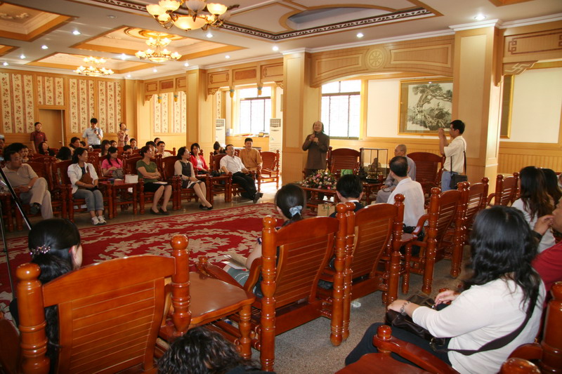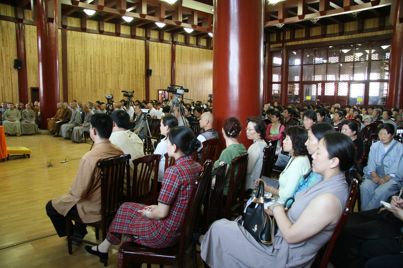 演讲结束后,林先生在指月楼和明影法师座谈,并和在座听众进行了佛学答问。