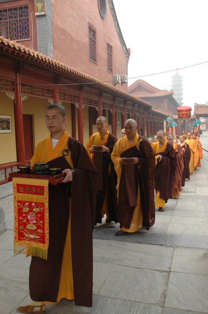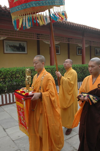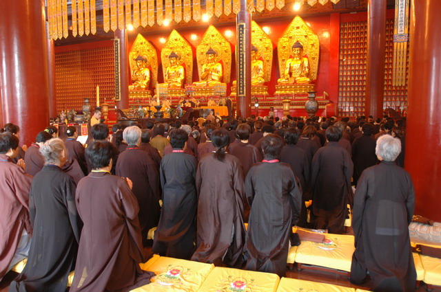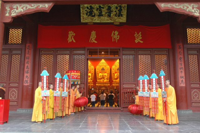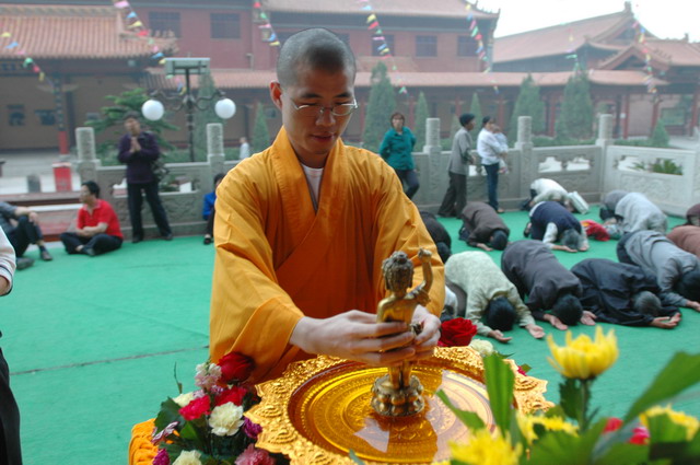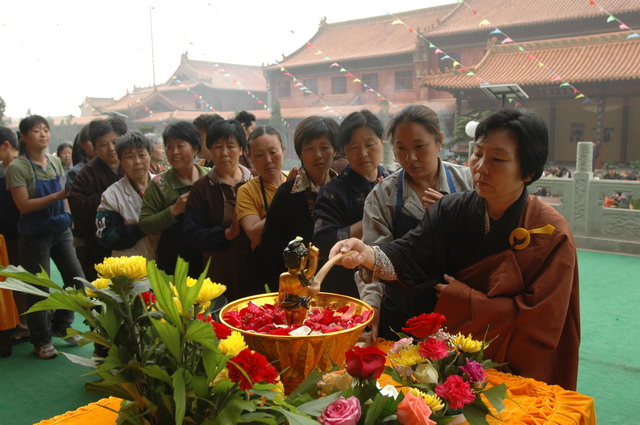 佛诞日到来前的三天(5月21~23日),寺院为数百名在家居士传授了菩萨戒。24日早课时,在万佛楼举行了隆重的浴佛仪式,上午并举行了祝圣普佛和浴佛大供。中午在万佛楼为大众传授三皈五戒,浴佛节法会至此圆满结束。