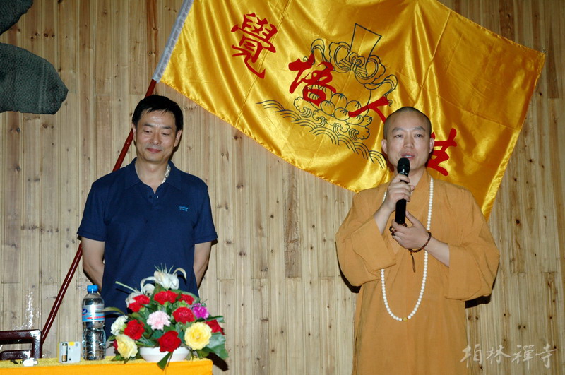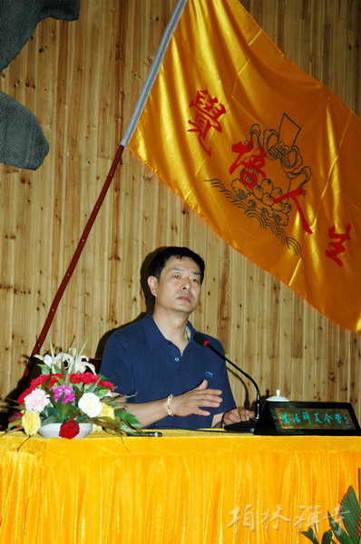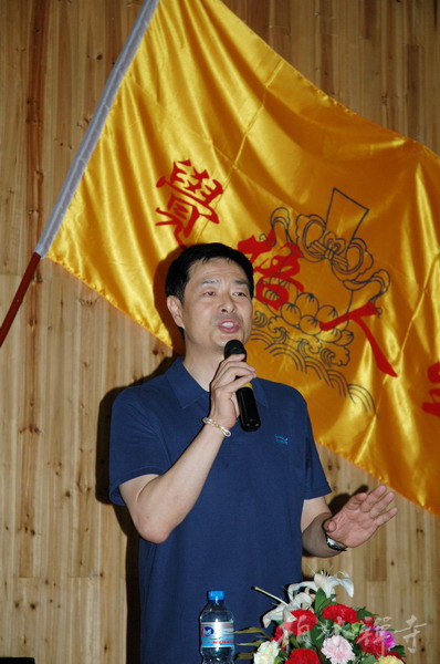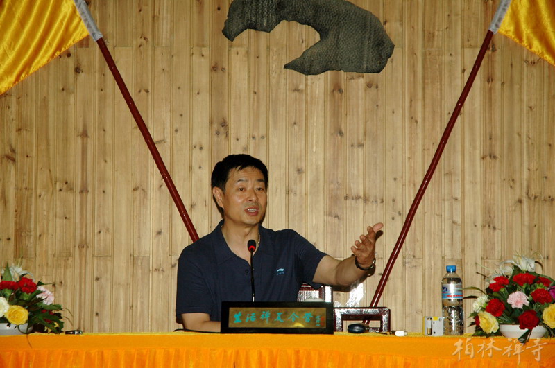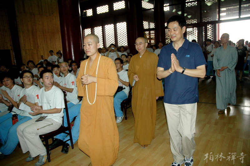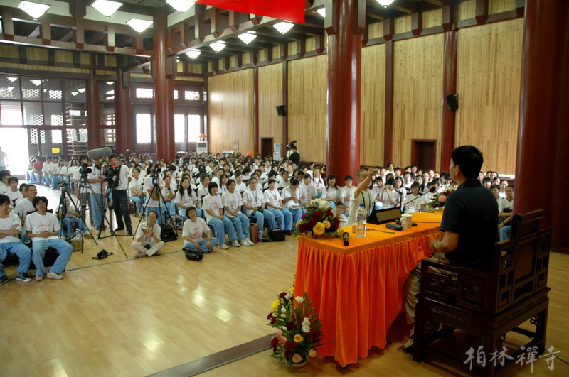 7月23日上午,在营员们嘹亮的《三宝歌》歌声中,著名演员濮存昕在明海大和尚的陪同下走上讲台,为400多名营员作了近两个小时的精彩演讲。