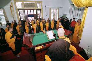 上午八时三十分,风和日丽,山门添彩,佛日增辉,传法大典在五叶堂隆重举行。在庄严的香