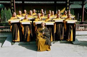 性慧公老和尚曲垂方便,付法传衣,俾心灯永续,祖道昌隆……宣求法词后,十七位接法禅人向老