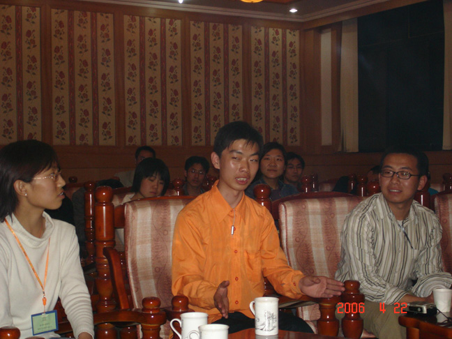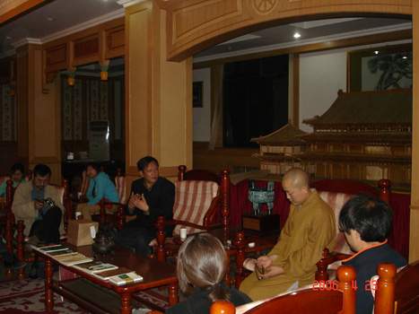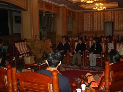 2006年4月22日及23日,明海大和尚与来自河北、北京两地大专院校禅学社成员进行了座谈。明海大和尚在指月楼为禅学社同学进行了主题为“大学生生活的五个天平”的讲座,就有关大学生学业与爱情、未来与现在、他人与自己、情商与智商、走路(实践行动)与找路等五个方面进行了充分的探讨。指月楼内,清品赵州茶,心随禅师意。来自两地的禅学社成员等与大和尚进行了自由的交流。